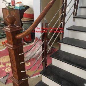 Suốt inox tròn 13mm,được uấn cong thuôn đều theo chiều lên bậc cầu thang.
